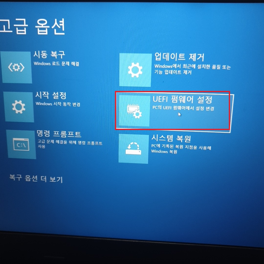- UEFI 펌웨어 설정 탭을 선택한다.
