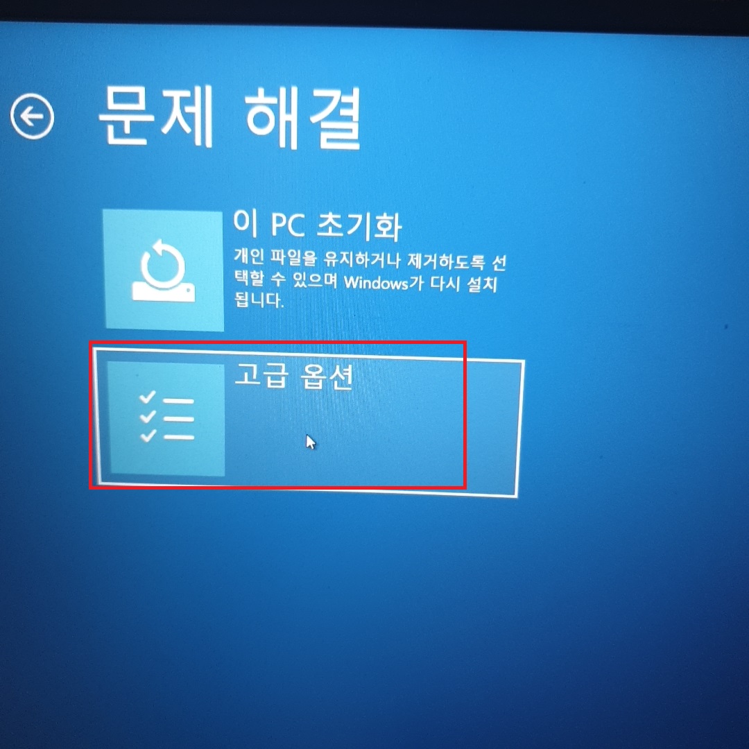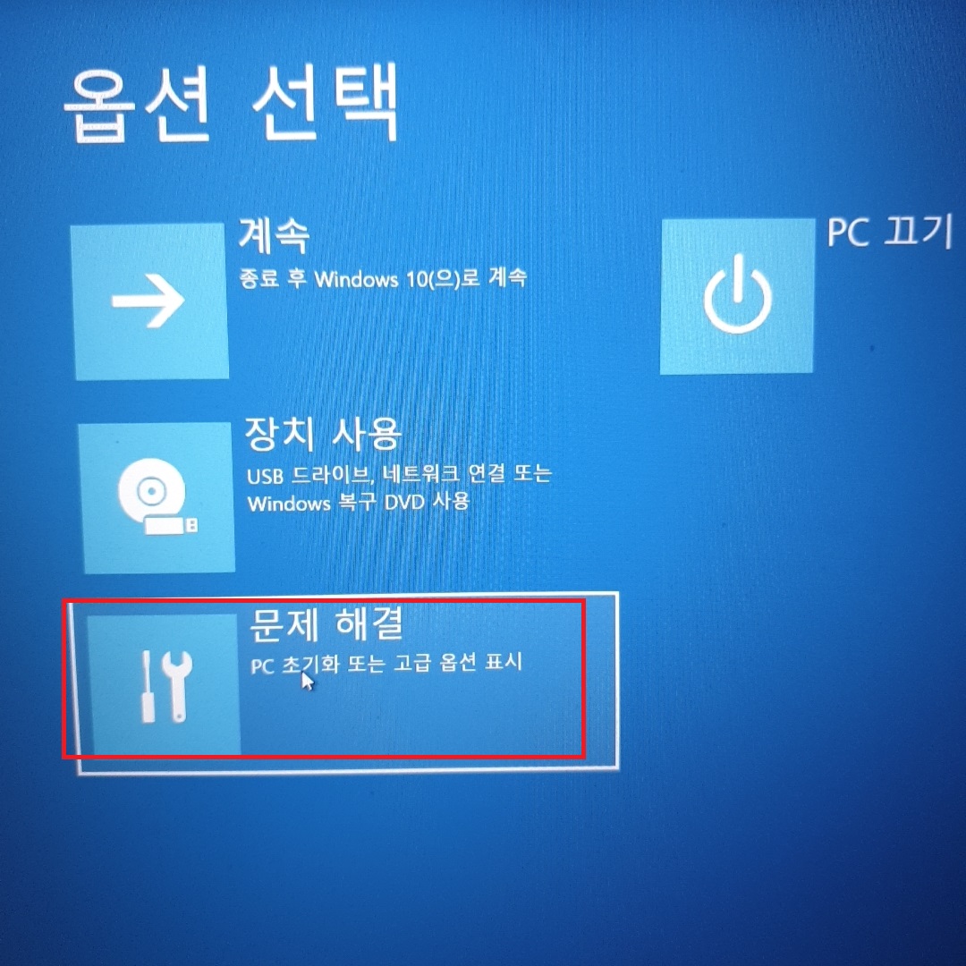 - 옵션 선택 화면이 나오면 문제 해결 탭을 선택한다.