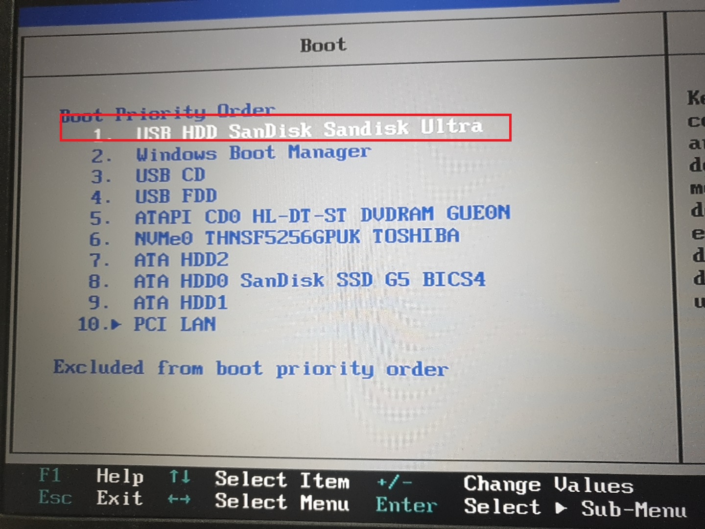 - 부팅 시 과정3. 에서 연결한 부팅디스크로 부팅이 되도록 설정을 한다. 필자는 과정11. 의 사진에서 Boot옵션에서 설정을 주었다. 바이오스마다 탭, 혹은 옵션의 명이 다를 수 있다.