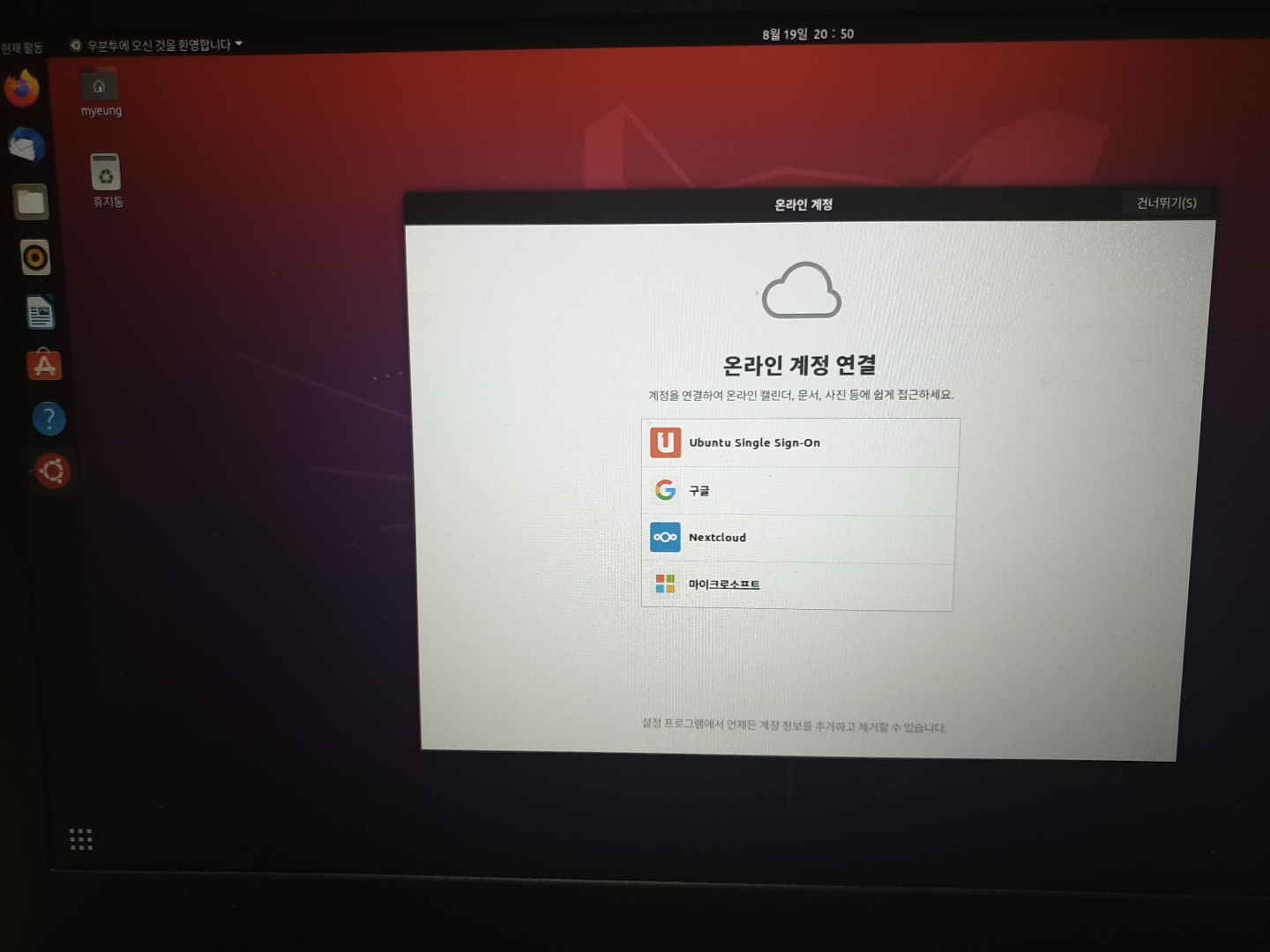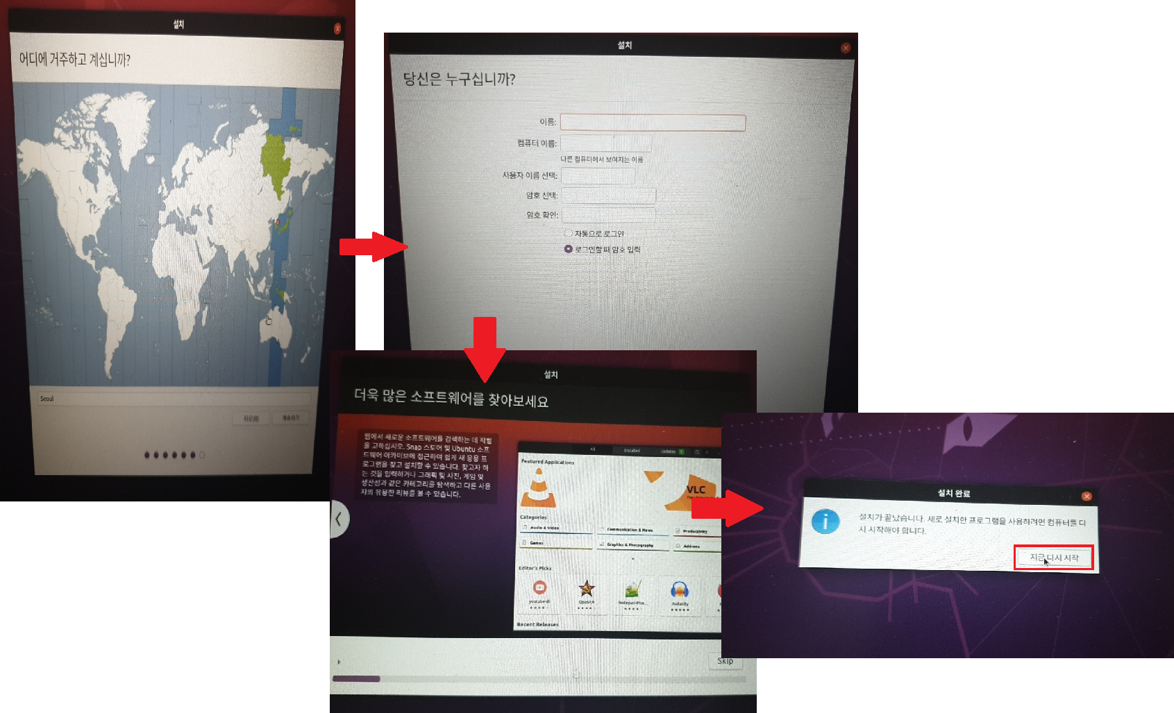 - 우분투 설치 완료되었다. 윈도우와 우분투 선택은 컴퓨터 부팅 시 선택 할 수 있다.
