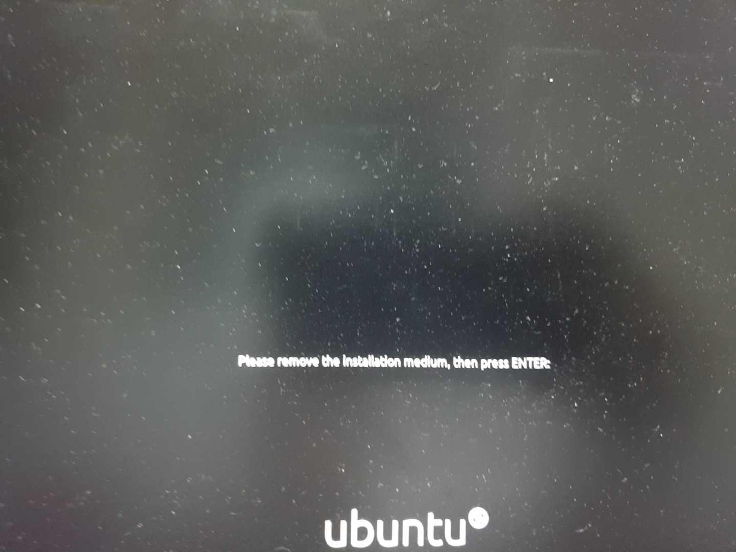 - 재시작 후 다음과 같은 화면이 나온다면 usb 부팅디스크를 제거 후 엔터를 누른다.