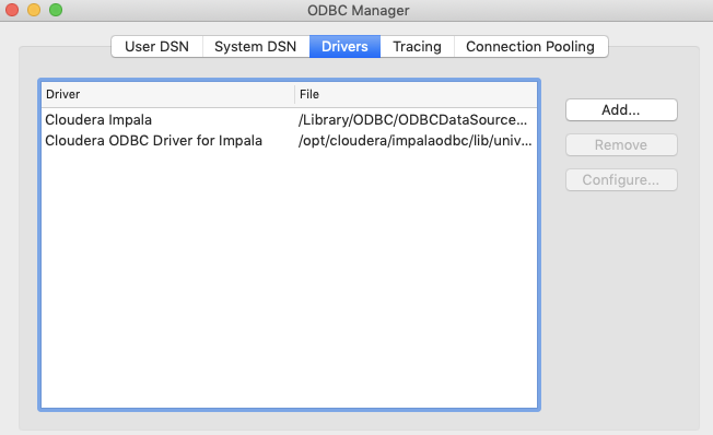Driver = /opt/cloudera/impalaodbc/lib/universal/libclouderaimpalaodbc.dylib